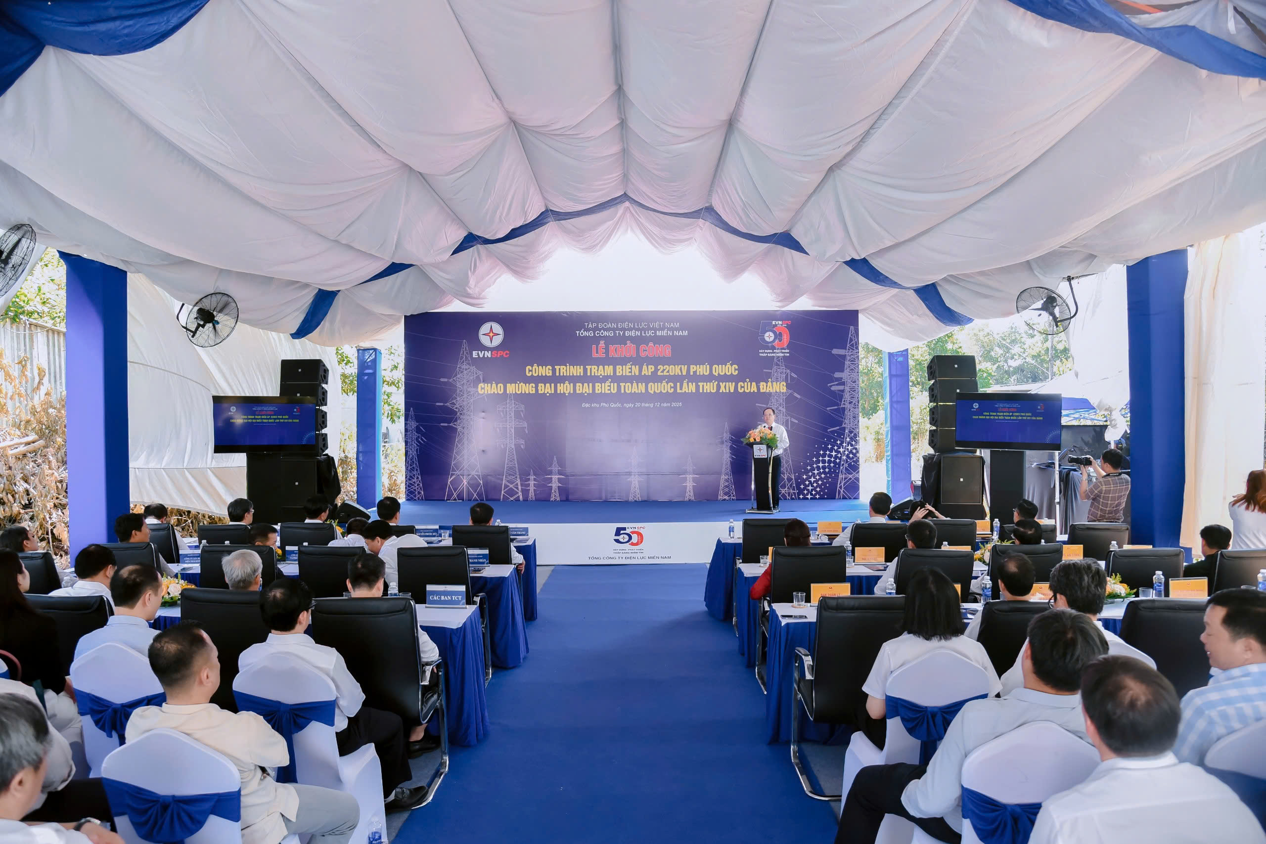 Sáng 20/12, UBND tỉnh An Giang phối hợp Tổng Công ty Điện lực miền Nam (EVNSPC) tổ chức lễ khởi công công trình trạm biến áp 220kV Phú Quốc. Đây là công trình chào mừng Đại hội đại biểu toàn quốc lần thứ XIV của Đảng.