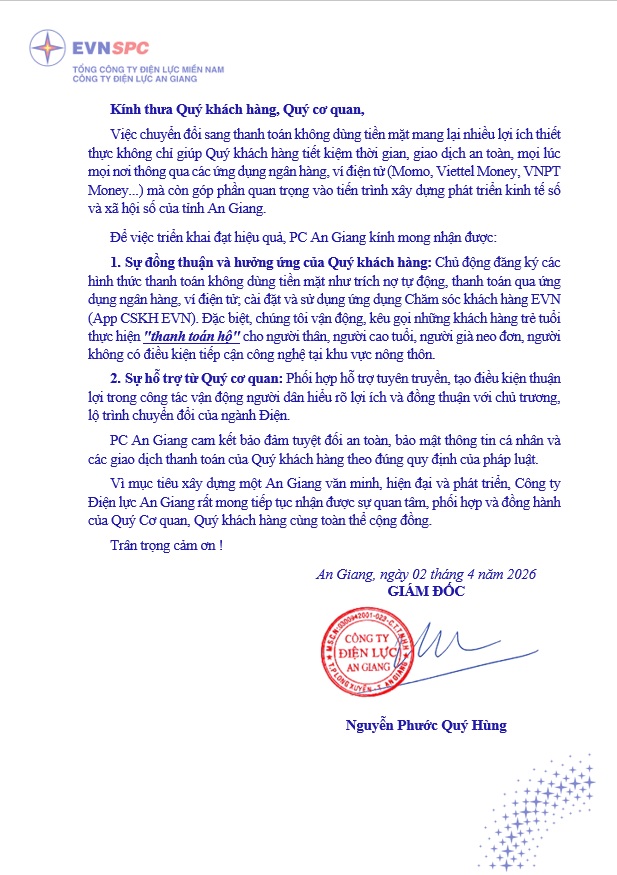 Đăng bởi Công Ty Điện Lực An Giang | 14:43 | 03/04/2026